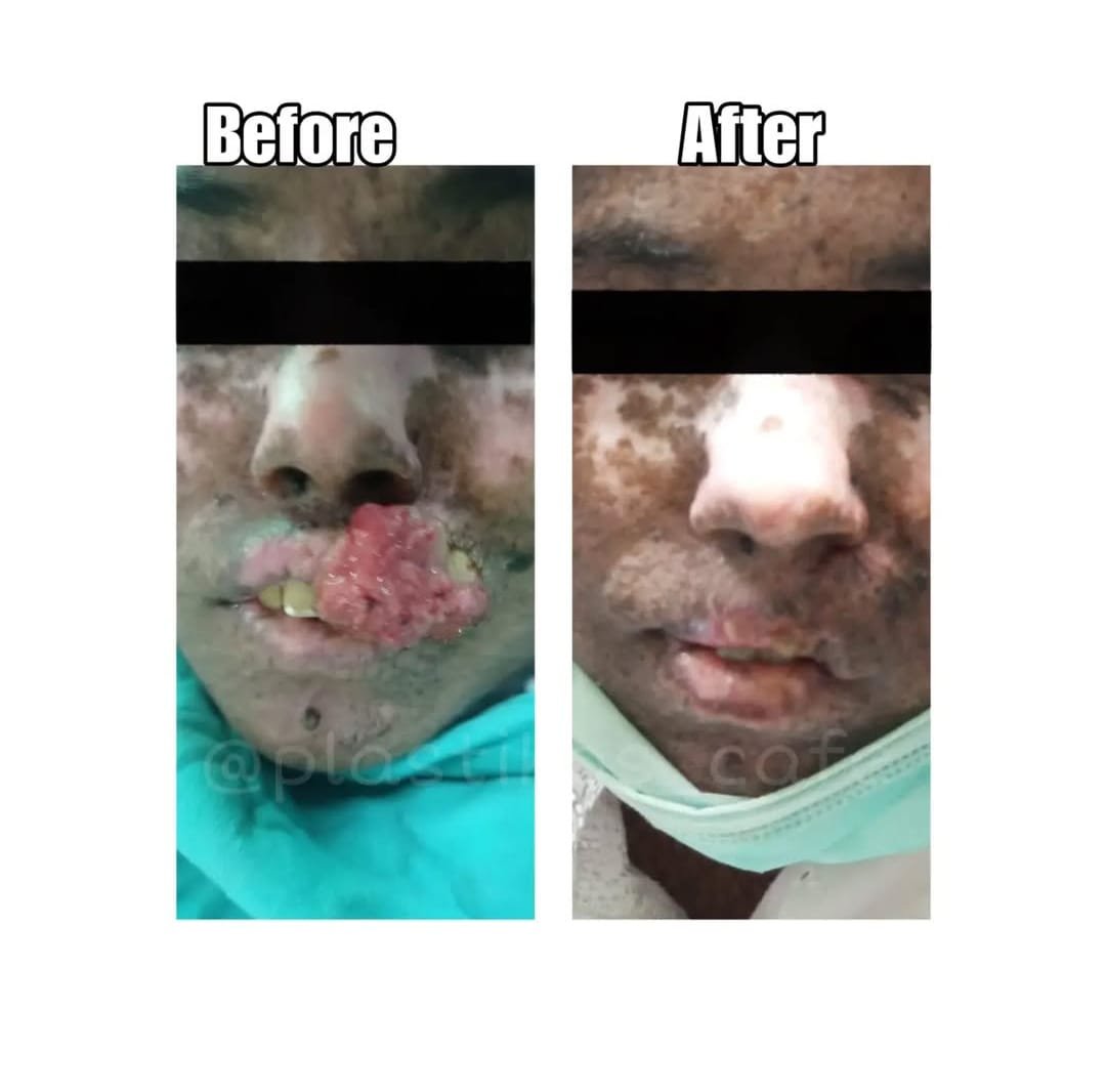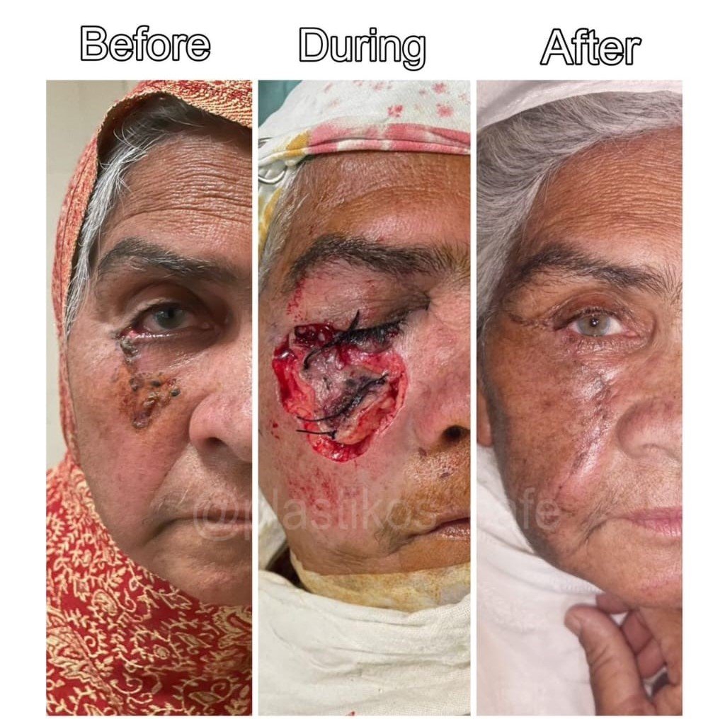 Plastic surgery removes a skin tumor, excising the abnormal growth to restore healthy tissue and improve both appearance and function.